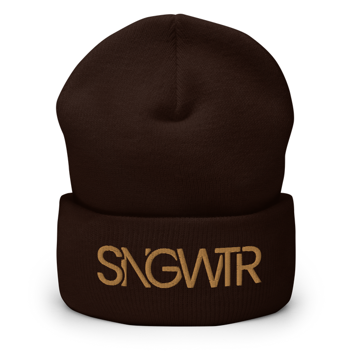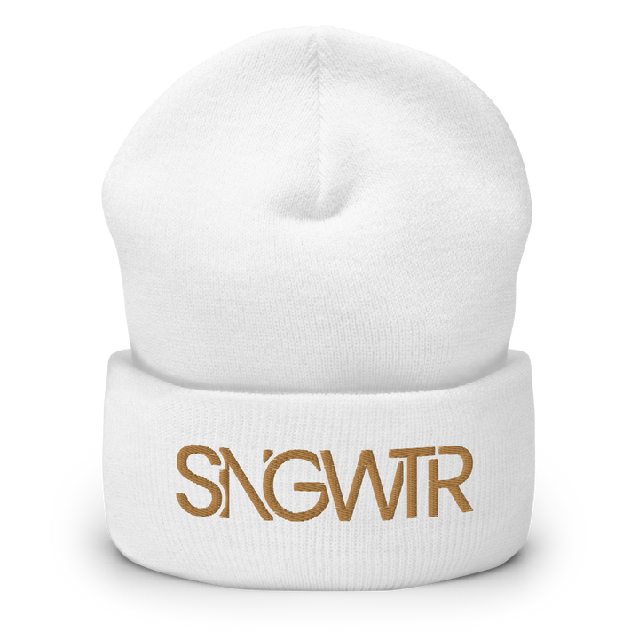 The Blackstock SNGWTR Gold Cuffed Beanie is designed for songwriters and lyricists, as well as creators. Its bold, direct, and trend-setting style makes it comfortable and eye-catching, perfect for those in the entertainment industry A snug, form-fitting beanie. It's not only a great head-warming piece but a staple accessory in anyone's wardrobe.