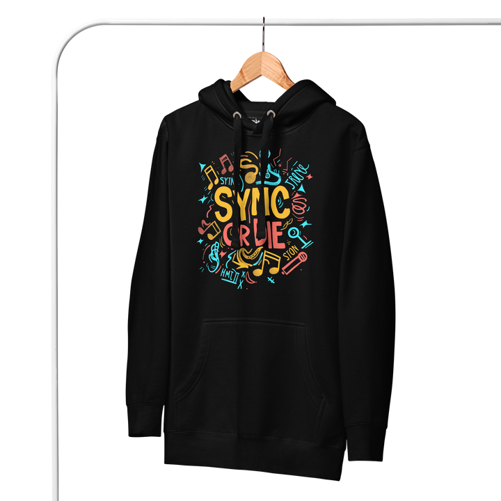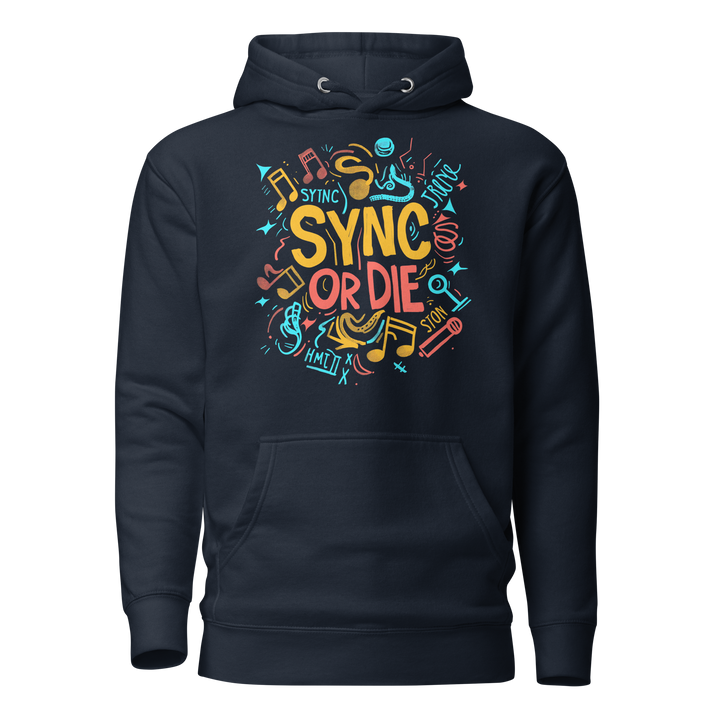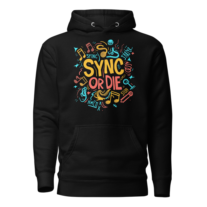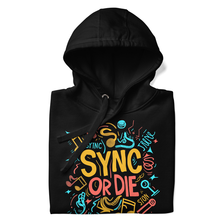 Journey to the ultimate freedom with Blackstock's Mosaic Unisex Hoodie. Sync your music or die trying to stream! Don't let anything hold you back from living your best life. Make a statement with style and functionality. Don't wait, get your SYNC OR DIE Hoodie!